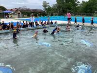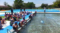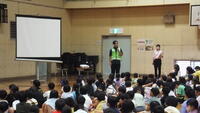 校長講話では、象のパペット「えびぞう」くんを使い、挨拶することの大切さを校長自身の体験談を踏まえ話をしました。