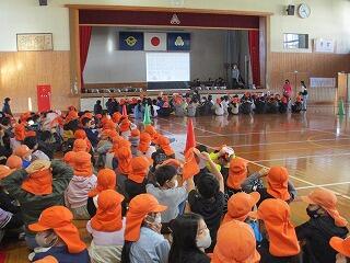1月28日(火)、火災を想定した避難訓練を行いました。子ども達は緊急放送に従ってハンカチで口と鼻をおさえ、3分ほどで全員が校庭に集合することができました。
