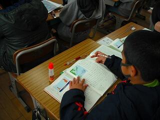 となりの教室では、総合的な学習の時間のまとめに取り組んでいました。