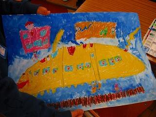 それぞれに車や電車などをモチーフにして自由な発想で絵を描いていました。