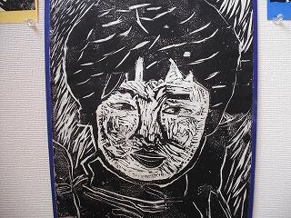 高学年では、彫刻刀を使って彫っていきますが、低学年では紙版画をしていました。
