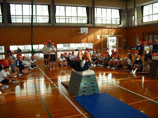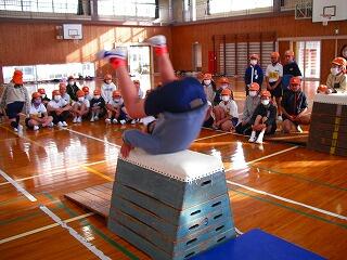 体育館で跳び箱の練習をしていました。上手な子どもたちがお手本を見せてくれました。