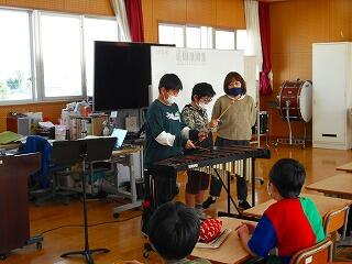 音楽室では、5年生が木琴で音づくりをしていました。