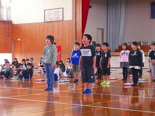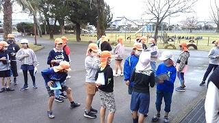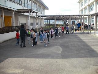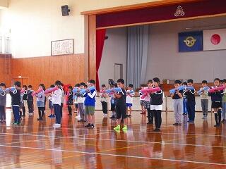 まずは、運動場でお別れ集会です。運営委員会の子どもたちが中心となって〇✖ゲームをしてくれました。