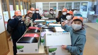 参観日に保護者の皆さま方が5年生に持ってきてくださった食品がおよそ300食ありました。