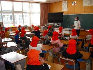 訓練前に各教室で火災の場合はどうすればよいのかについて指導を行いました。