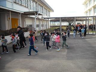 その後、家庭科室から火災が発生したことを想定して運動場へ避難しました。