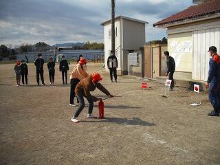 運動場への避難を完了した後には、消防署の方の指導をいただきました。