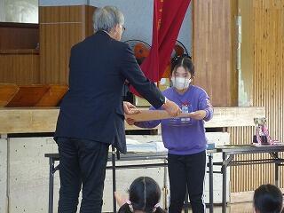 まずは、各学年の代表児童に修了証を授与しました。