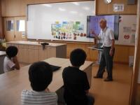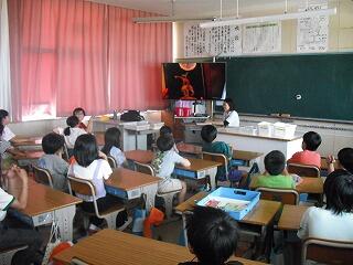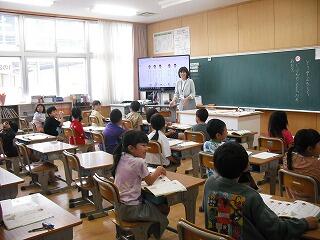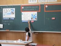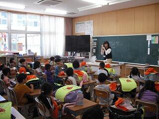 今回は、1年生の子どもたちにもわかりやすいように、「困っている子猫を見つけたらどうする?」という場面をとおして、動物の命について考える時間となりました。子どもたちは真剣な表情で話を聞き、動物にも人と同じように大切な「いのち」があることに気付くことができました。
