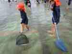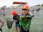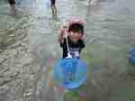 水着に着替えた2年生が、網を使ってヤゴを救出しました。みんなとても楽しそうでした。