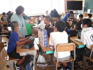 宮崎県内の小学校4年生と中学校2年生に「発見 たんけん 宮崎県」という冊子が配付されます。この冊子には、宮崎県内のたくさんの企業が紹介されています。子どもたちにとって、キャリア教育の観点から、大変意義のある、そして、興味深い内容です。今日は、その「発見 たんけん 宮崎県」の贈呈式が、妻南小学校の4年生を対象に行われました。