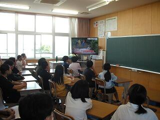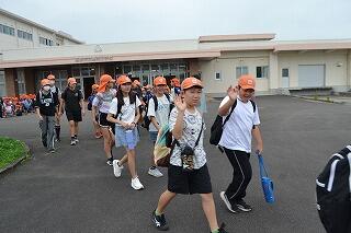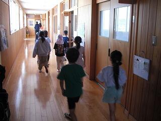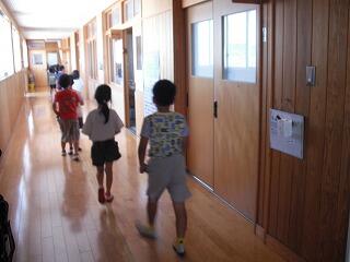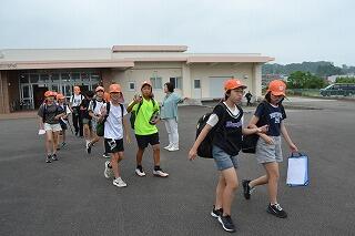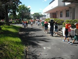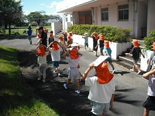 一旦外へ避難しましたが、とても暑かったので反省は放送で行いました。