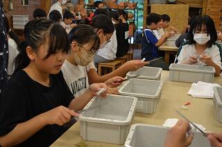 毎年、西都ロータリークラブのみなさんにお世話になり、プールで育っていたヤゴたちを救出し、育てる学習を行っています。