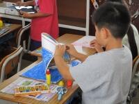 この時間は、「立ち上がった紙のせかい」という学習です。複数の紙を使い、立体的に作品を完成させようといろいろな工夫を考えていました。