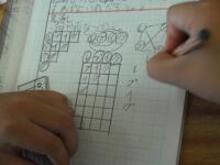 子どもたちは、合同な図形では、対応する辺や角はどうなっているのかを調べ、まとめました。一生懸命考え、話し合う子どもたちの姿にとても感心しました。