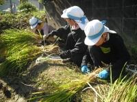 5年生は、1学期から学校前の田んぼでお米を育ててきました。