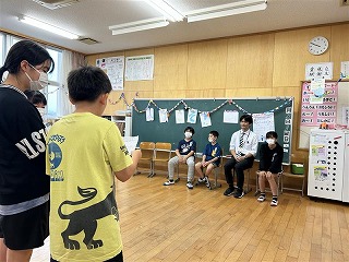本日10月28日(月)から11月24日(日)【オープンスクール】まで、本校に教育実習生が来ています。5年2組を中心に、学校の先生になるための様々な勉強に取り組まれます。子ども達も楽しみにしていたようで、歓迎会を行いました。子ども達に笑顔で、丁寧にかかわる教育実習の先生。一か月間よろしくお願いします。