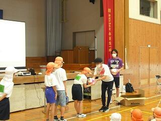 今日は、テゲバジャーロ宮崎の選手にお越しいただき、6年生を対象に交流学習を行いました。