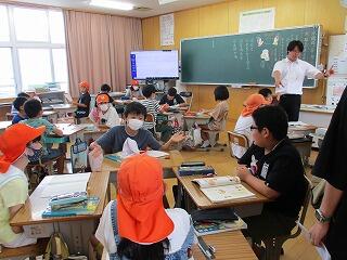 授業では、子どもが友達と楽しそうに話し合ったり、堂々と意見を伝えたりする姿が見られ、1回目の参観日と比べて大きな成長が感じられました。懇談会では、初めに西都市教育委員会による中学校再編に向けた説明会がありました。その後、学級担任から1学期の子どもの様子や夏休みの過ごし方などについて話がありました。
