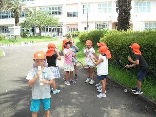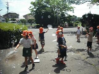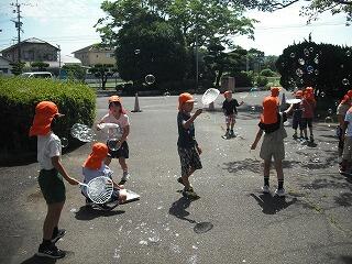 それぞれにストローやうちわなどで楽しくシャボン玉づくりをしている様子が見られました。