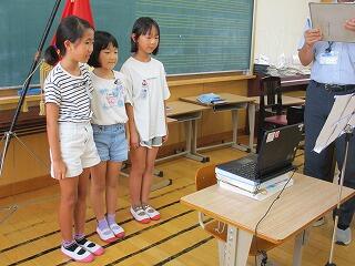 児童代表の挨拶では、3年生が1学期の間に頑張ったことや出来るようになったことについて、堂々と発表していました。校長先生からは「夏休みに何かを続けてください。」というお話がありました。ちなみに、校長先生は、毎日30分間の読書を続けられるそうです。
