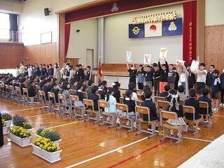 式の間、1年生は落ち着いて話を聞いたり大きな声で返事をしたりしていて、とても立派な姿を見せていました。