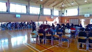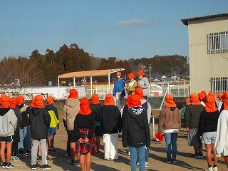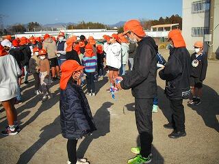 まずは、運動場でお別れ集会です。運営委員会の子どもたちが中心となって〇✖ゲームをしてくれました。