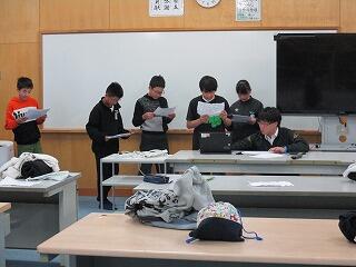 1月25日(木)の5校時、火災の避難訓練を実施しました。今回は、火災時の避難の仕方や消化器の使い方について消防署の方に教えていただきました。