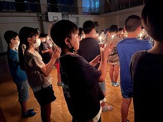 昨夜のキャンドルファイヤーでは、一緒に宿泊している学校の友だちとの交流を深めました。