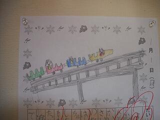 2年生の教室付近には、冬休みの絵日記が掲示していました。