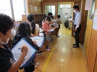 国語科「聞き取りメモの工夫」で、目的に合ったメモの取り方について学習しました。学習後は、実際に学校の職員にインタビューしながらメモを取る活動を設定し、実践を通して学びを深めました。学習後、子どもたちは、「今までメモをとるのは苦手だったけれど、学習をとおして上手にメモをとれるようになった。」「今度の校外学習でいかしたい。」などの感想をもつことができていました。この学びを、日常生活でいかすことができると、さらに力が伸びると感じた学習でした。