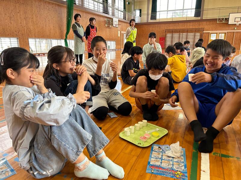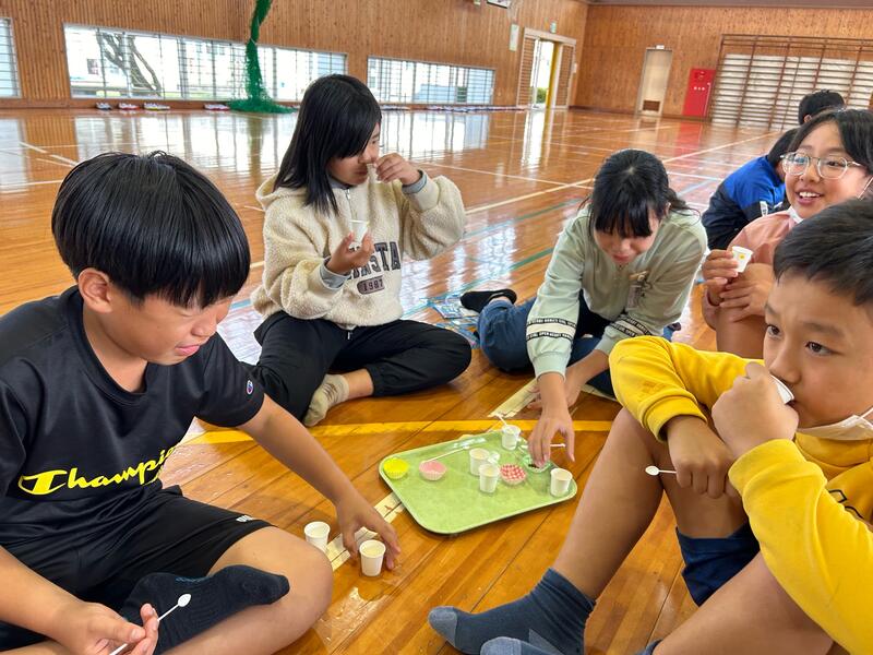 本日、みやざき味覚の授業運営事務局「IKUMI」の皆様方から、味覚の授業をしていただきました。味覚の種類や味覚は五感で感じること、大人より子どもの方が味を感じやすいことの秘密など、多くのことを教えていただきました。これからは、五感で感じることを楽しみながら食事をしたいですね。