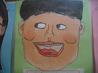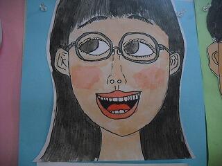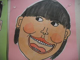 児童玄関前に6年生の似顔絵が飾ってあります。