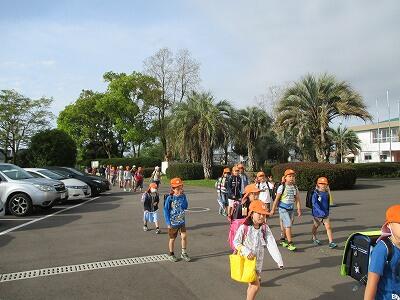 班長さん中心に元気に登校していますよ。1年生もきちんと並んでの登校の様子です。