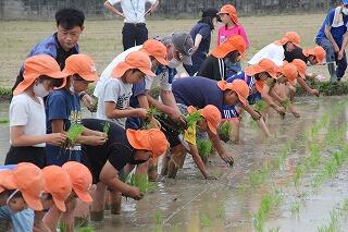 田植え(5年生) 投稿日時 : 2021/06/11 syokuin 今年も校門前の田んぼをお借りして、5年生が米作りをします。6月10日に地域づくり協議会、JA、保護者のみなさんと田植えをしました。 Tweet