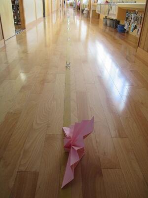 廊下に舞い降りた美しいツルたち・・・。子ども達の安全な歩行を見守っています。