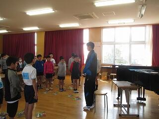 妻高校からインターンシップで本校の卒業生が来校!みんなで歌にのせて「宜しくお願いします」の気持ちを伝えました。