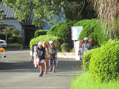 子ども達はまぶしい日差しの中・・元気に登校しましたよ。