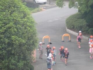 あいさつ運動が展開されています。元気の良い声が響きます。