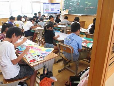 それぞれの児童が考えた感想画・・・色づけの段階に入っていますよ。