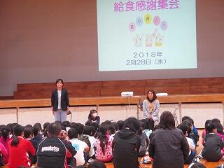 日頃、給食でお世話になってる先生方を2名お呼びして、感謝集会が行われました。