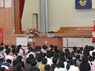 修了式 投稿日時 : 2023/03/24 syokuin 令和4年度の修了式を行いました。 まずは、各学年の代表児童に修了証を授与しました。 1年間よくがんばりました。 代表の言葉は、1年生が発表しました。 1年間の成長を十分に感じる発表でした。 ご家庭でも、ぜひ1年間のがんばりを褒めてあげてください。