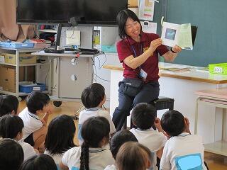 各学級の様子をのぞいてみると、友だちや生き物に関するお話、落語など、子どもたちの好みに合わせた読み聞かせが行われていました。中には、英語の本を読み聞かせている先生もいらっしゃいました。