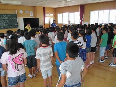 発表を受け止める子ども達 投稿日時 : 2017/05/31 minami03 5年生の演奏を全校でしっかり受け止め、真剣に耳を傾けていました。集会委員会のみなさんも大活躍・・・。代表児童や先生が感想や講評を述べられ、5年生は嬉しそうに受け止めていました。発表する側も聴く側も次のステップを踏んでいました。・・・5年生は片付けもみんなで力を合わせて、頑張っていましたよ。
