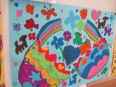 2年生掲示板 投稿日時 : 2017/05/23 minami03 「卵がわれたら・・・、何がとびだすかな?」2年生はそれぞれが考えた世界を絵に描いています。数点完成し、掲示板に掲げられていますよ!夢あふれる世界ですね。