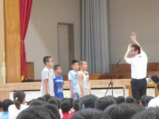結団式・・校長先生のお話 投稿日時 : 2018/08/30 minami03 運動会の取組みについて校長先生から大切なお話がありました。子ども達は真剣に耳を傾けていましたよ。詳しい内容は本ホームページ「校長室から」をご覧下さい。