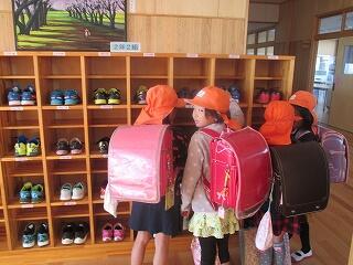 係活動で靴箱点検!きれいにシューズがならんでるか・・見守っていますよ。