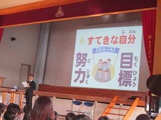 保体部の先生のお話 投稿日時 : 2019/01/07 minami03 今月の目標について大切なお話がありました。代表の子ども達の演技も加わり、より具体的な内容で子ども達は真剣に受け止めていましたよ。