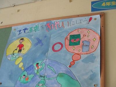 「地球をきれいにしよう!」  大切なことを呼びかけるいろいろなポスターが掲げられていますよ!